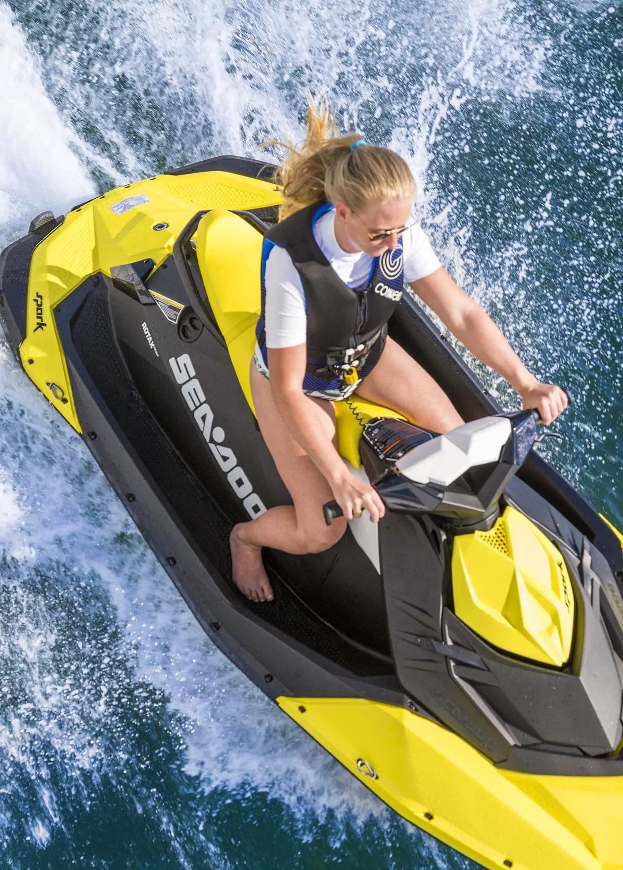 Our jet ski rentals are Sea-Doo Sparks! These compact and nimble jet skis are perfect for those seeking an exciting and fun ride on the water. Renting a Sea-Doo Spark will provide a thrilling experience for water enthusiasts.